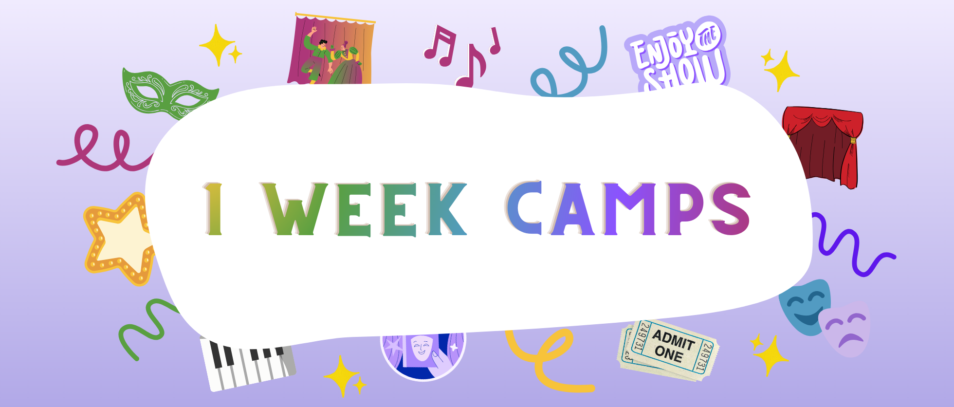 In this session, students will put together a show centered around songs from Disney’s Renaissance era! Songs include “Just Around the Riverbend” from Pocahontas, “Be Our Guest” from Beauty and the Beast, “Under the Sea” from The Little Mermaid, and “Strangers Like Me” from Tarzan.